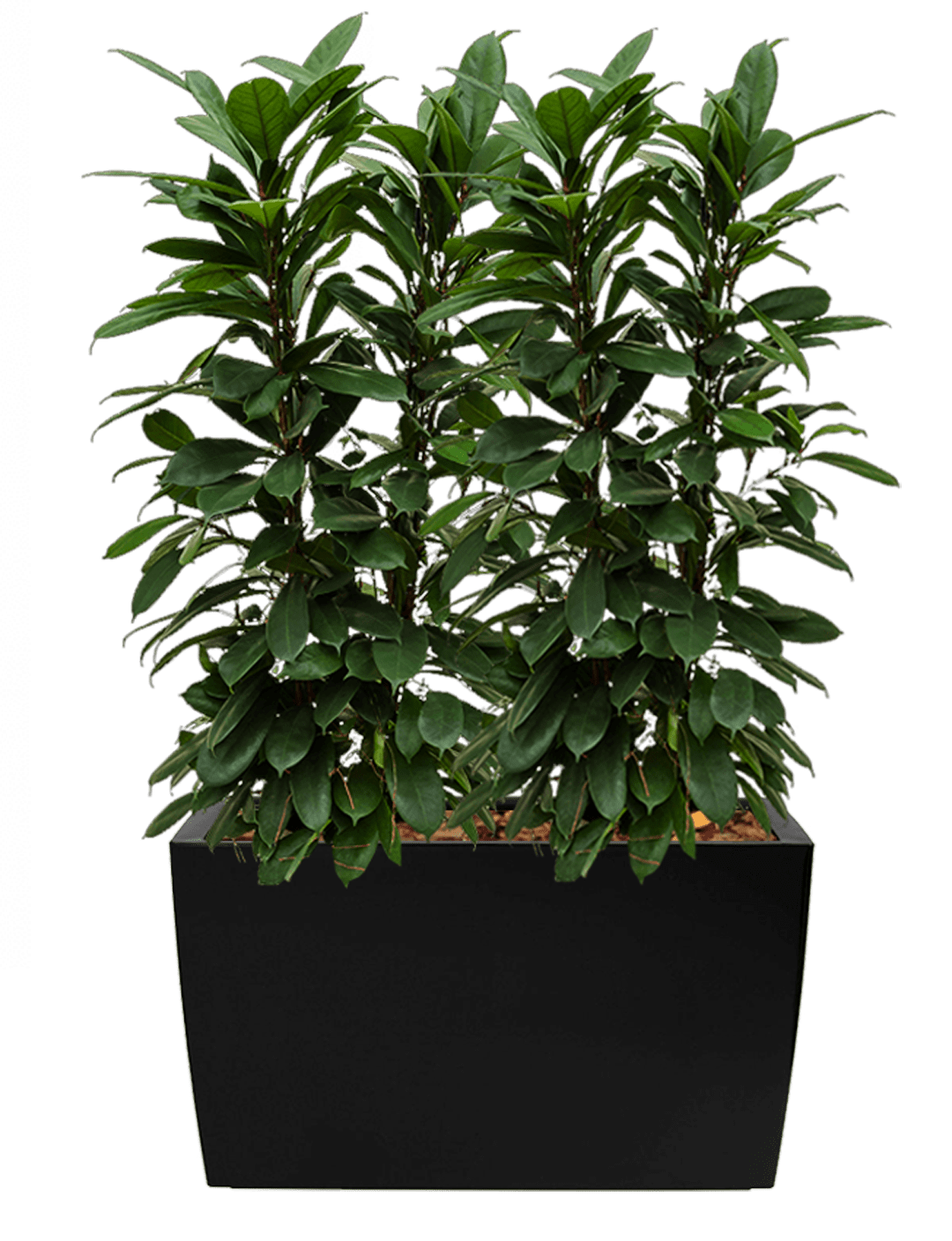 2 pcs. Ficus Cyathistipulas in glossy plastic plant box. Planter size 76x45x32cm. Total hight with plant 160cm.
