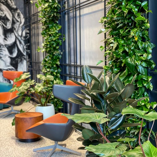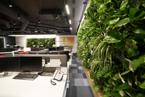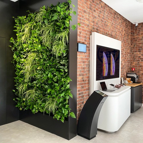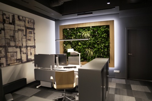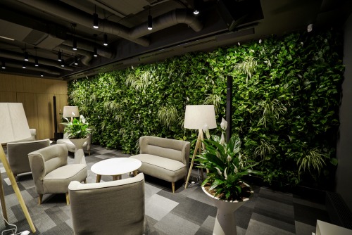 The presence of a green wall creates a visual effect which leaves an impression on your client, as well as showing your employees that you care about their well-being and health. The use of this kind of indoor greenery has a positive impact on a room’s air quality, as it absorbs carbon dioxide, carbon monoxide and benzol, purifies and humidifies the air, and creates additional oxygen. In this kind of environment, employee productivity and client well-being increases.