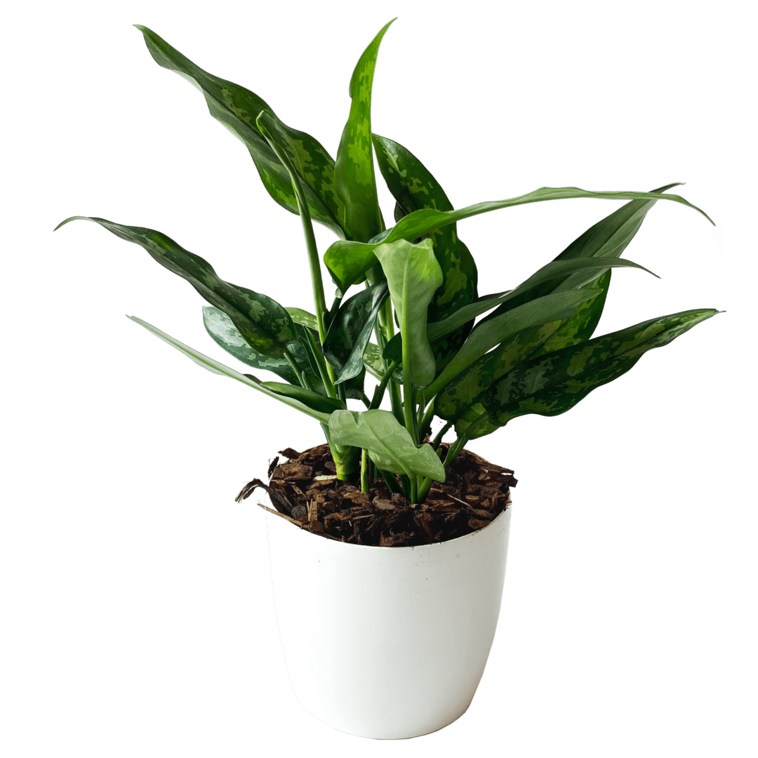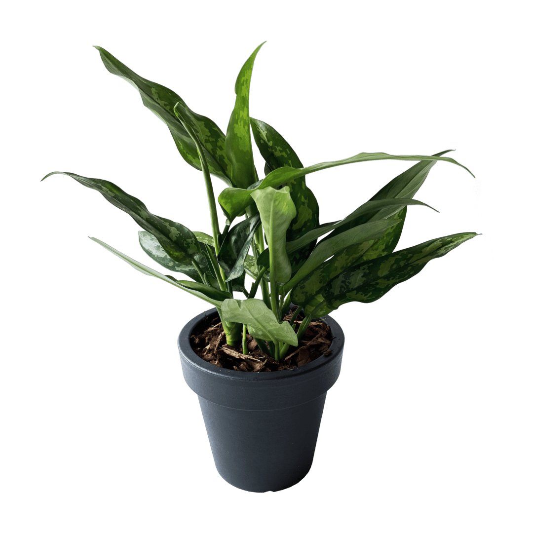 Аглаонема в круглом горшке диаметром 18 см. Общая высота с растением 35 см
