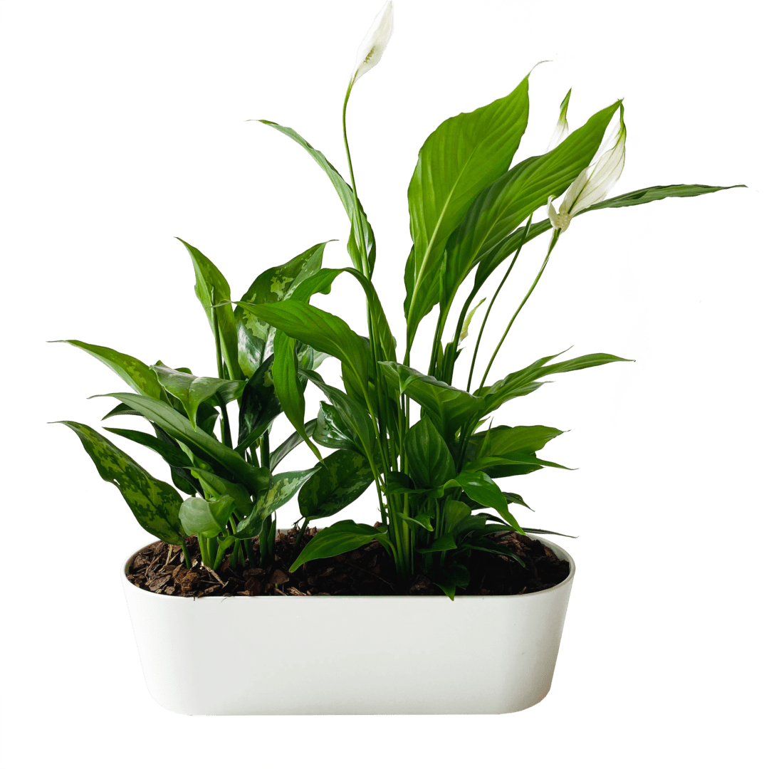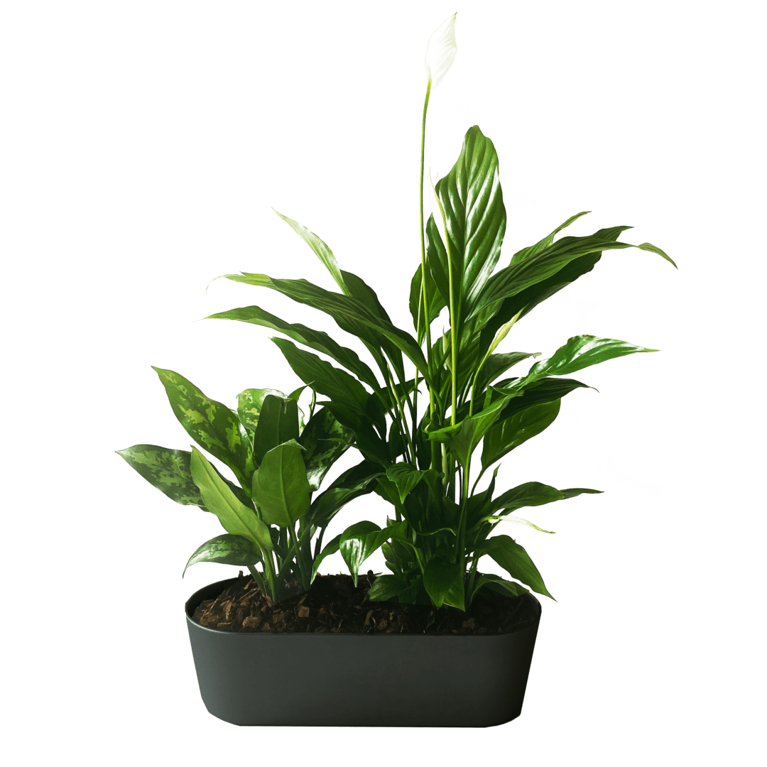 Разные растения посажены в пластиковом горшке. Длина 30 см. Bысота композиции ~ 40 см