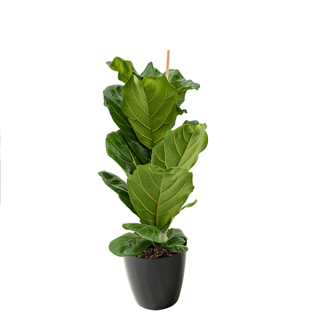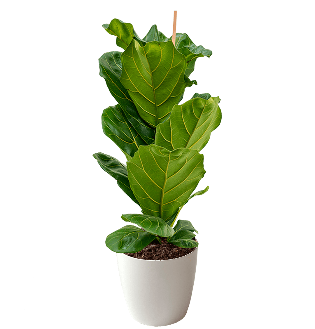 Фикус лирата в круглом горшке диаметром 25 см. Общая высота с растением 80 см