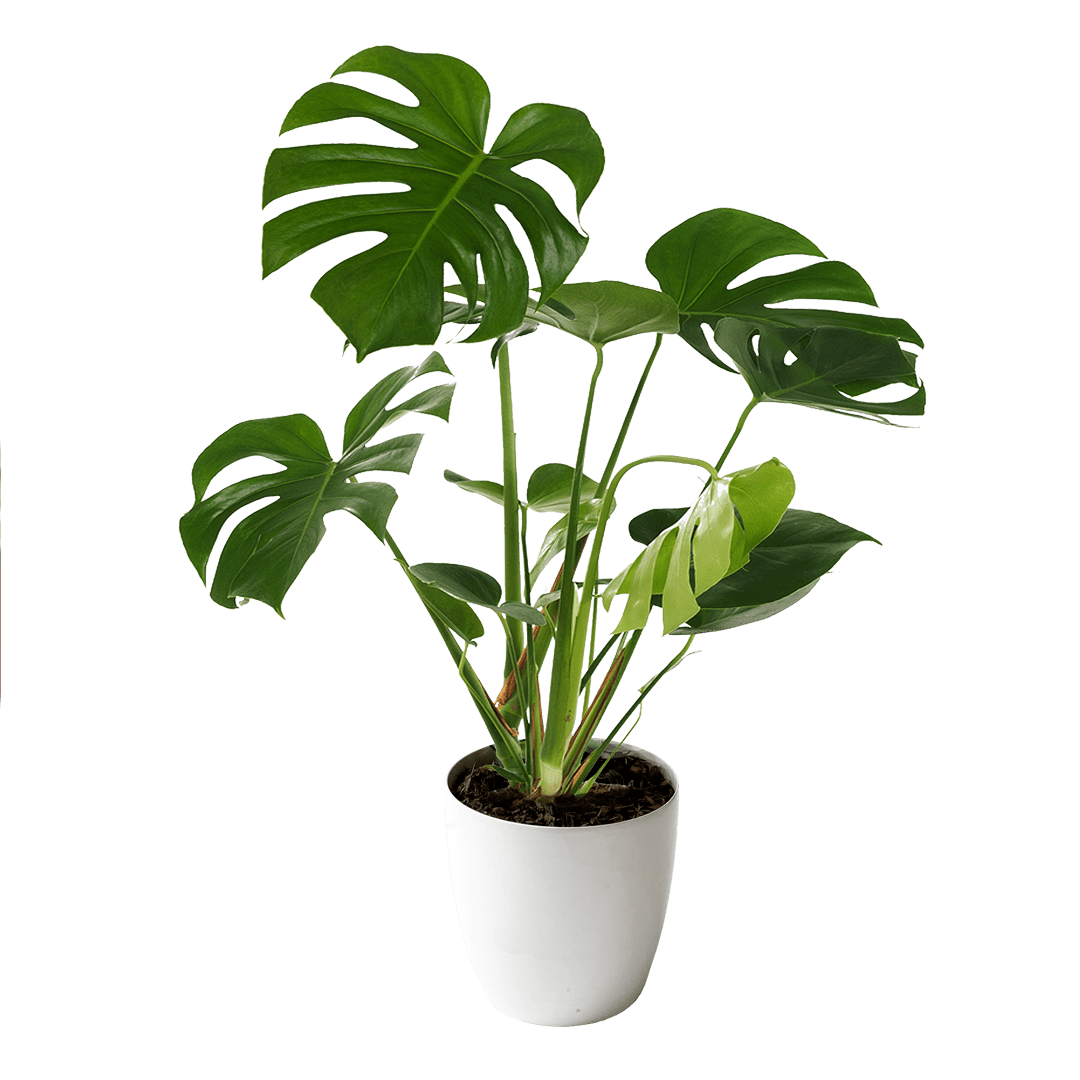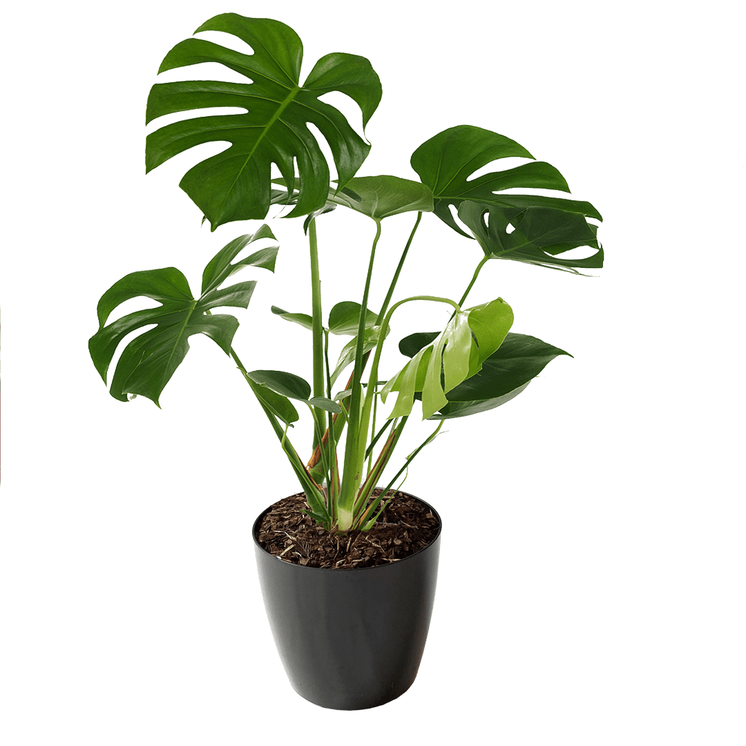 Монстера в круглом горшке диаметром 20 см. Общая высота с растением 50 см